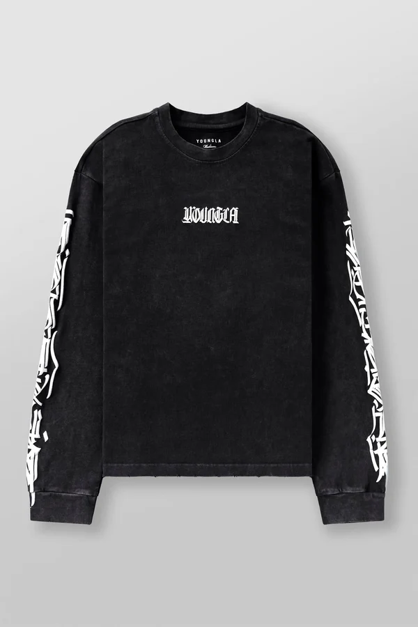 Black-Acid Wash YoungLA Tee Wavy